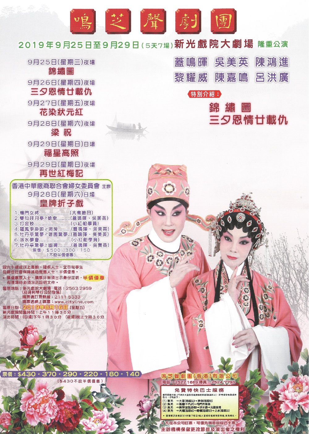 2019-09-29 7:30pm --- $140, $180, $220, $290, $370, $430 粵劇殿堂